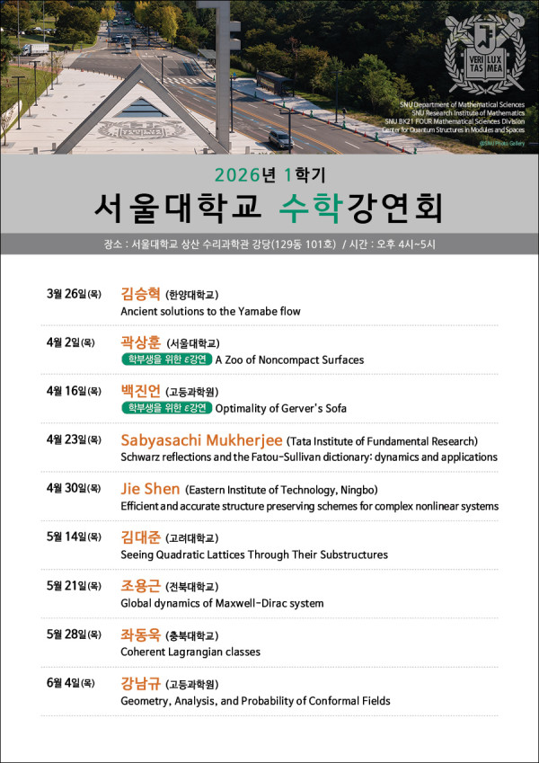 서울대학교 수학강연회 (2026년 1학기)