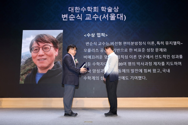 대한수학회는 2025년도 대한수학회 공로상·학술상·국내논문상·상산젊은수학자상·디아이 수학자상 수상자를 발표하며 변 교수를 학술상 수상자로 선정했다고 20일 밝혔다.