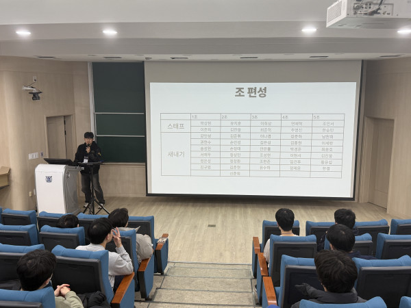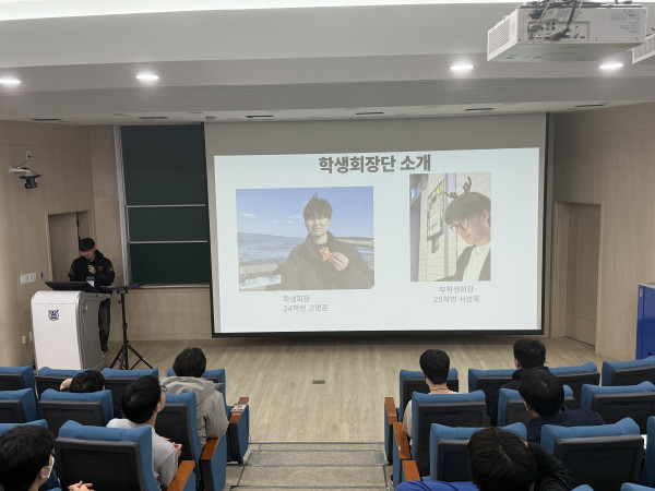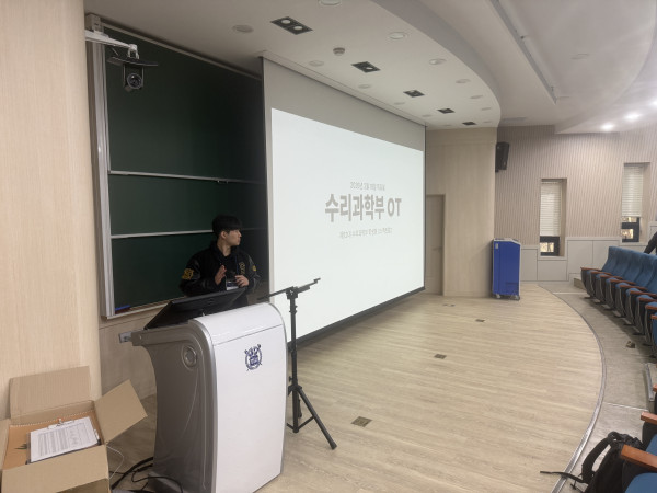 이날 행사에는 신입생 외에 신입생을 환영하는 선배들(24학번 고명준 학생회장, 25학번 서성욱 부학생회장)이 수리과학부의 기본 안내 이 후 수강 신청 및 학교생활에 대한 전반적이 안내를