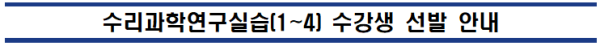 [기간 연장] 수리과학연구실습(1~4) 수강생 선발 안내 (2025.11.03(월)~11.14(금))