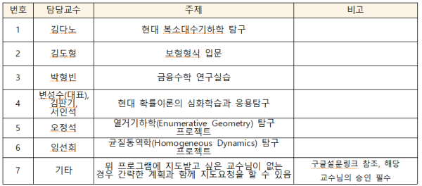 g. 선정후 수리과학부 행정실과의 협의 없이 정규 수강을 포기하는 경우 이후 <수리과학연구실습> 프로그램과