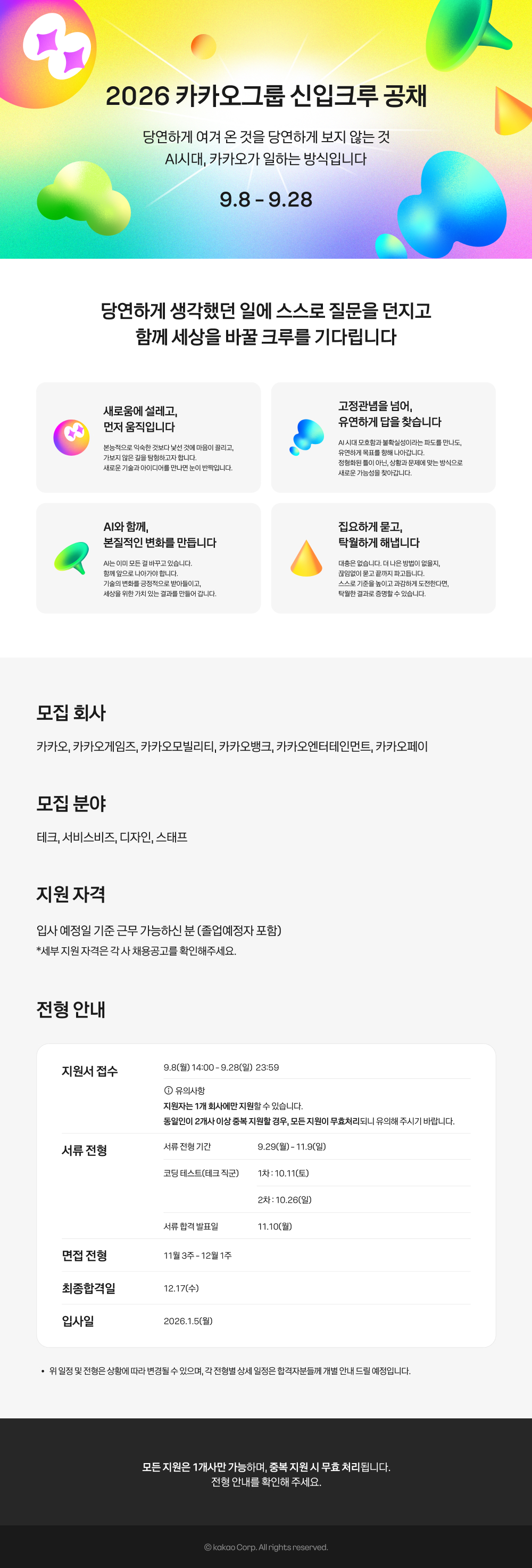 [카카오그룹] 2026 카카오그룹 신입크루 공채