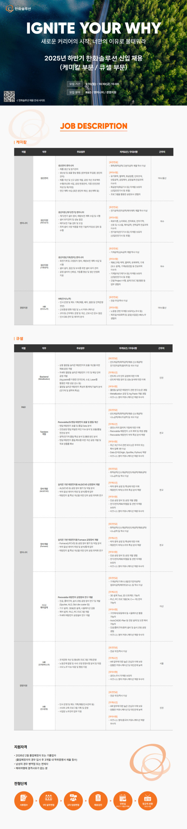2025년 하반기 한화솔루션 신입 채용(케미칼 부문 / 큐셀 부문) ~10/10