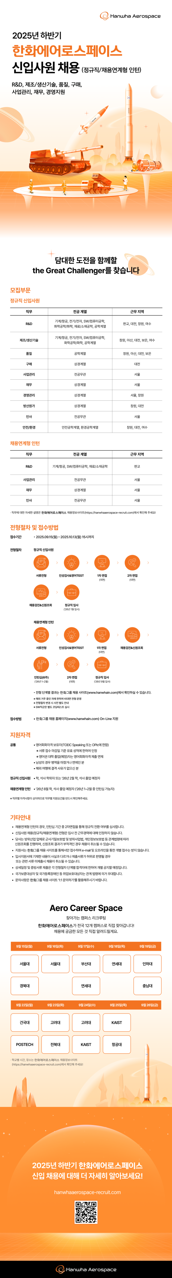 [한화에어로스페이스] 2025년 하반기 신입사원 채용 (~10.13(월))