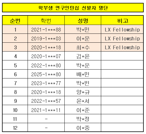 2026학년도 자연과학대학 학부생인턴십(상반기, 유형2) 선발 결과 안내드립니다.