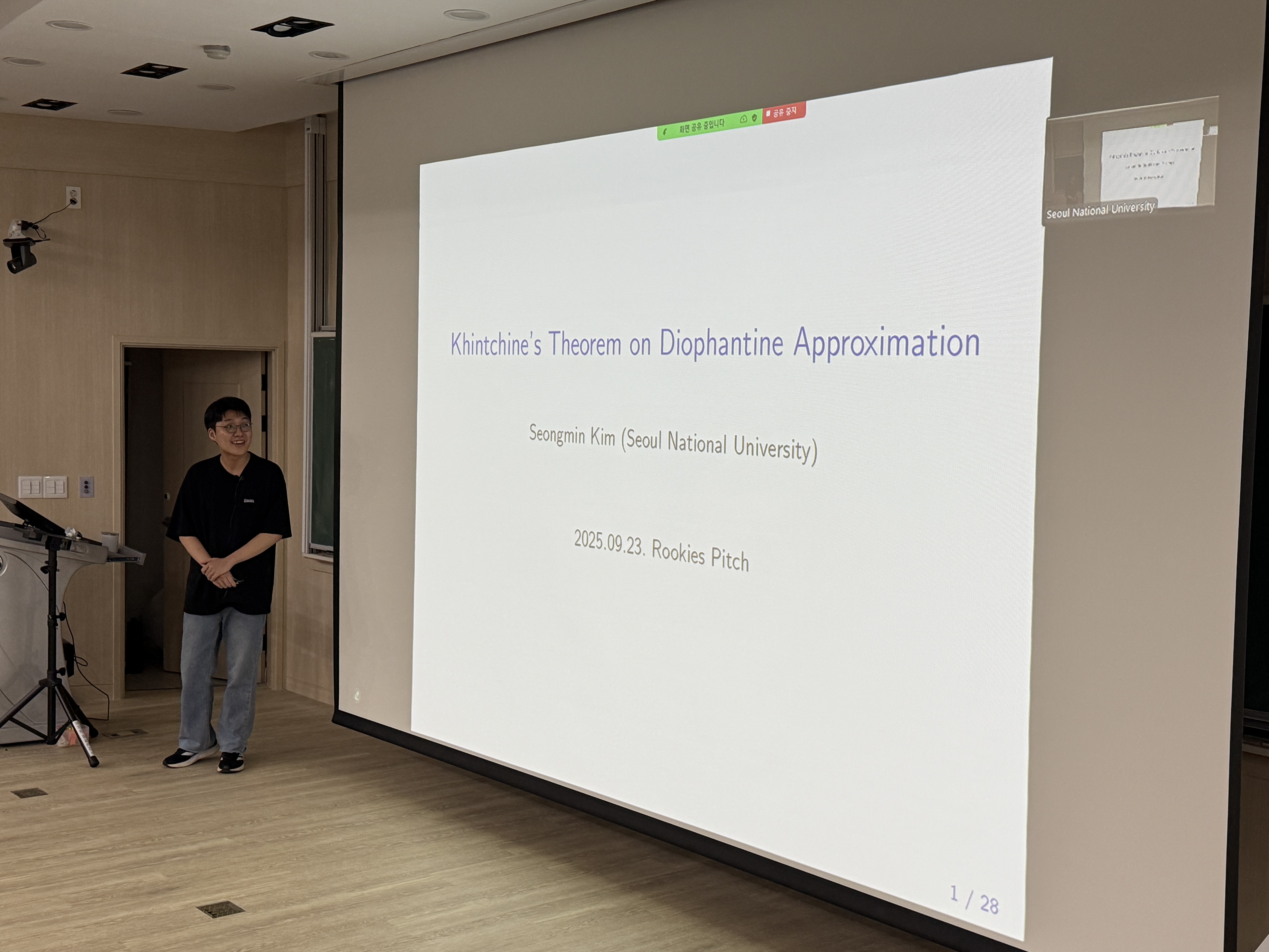 Diophantine approximation is the study of approximating real numbers by rational numbers. For example, one can ask whether a real number x is ψ-approximable; that is, whether there are infinitely many rationals p/q satisfying |x-p/q|<ψ(q)/q for a given monotonic function ψ. A century ago, Khintchine discovered a remarkable dichotomy for the Lebesgue measure of the set of ψ-approximable numbers. Since then, Khintchine’s theorem has been extended in various directions, including inhomogeneous approximation and higher-dimensional generalizations. In this talk, I will introduce the Allen-Ramírez conjecture on removing the monotonicity condition from the inhomogeneous Khintchine-Groshev theorem and discuss a recent proof of the conjecture in the case (n,m)=(2,1).